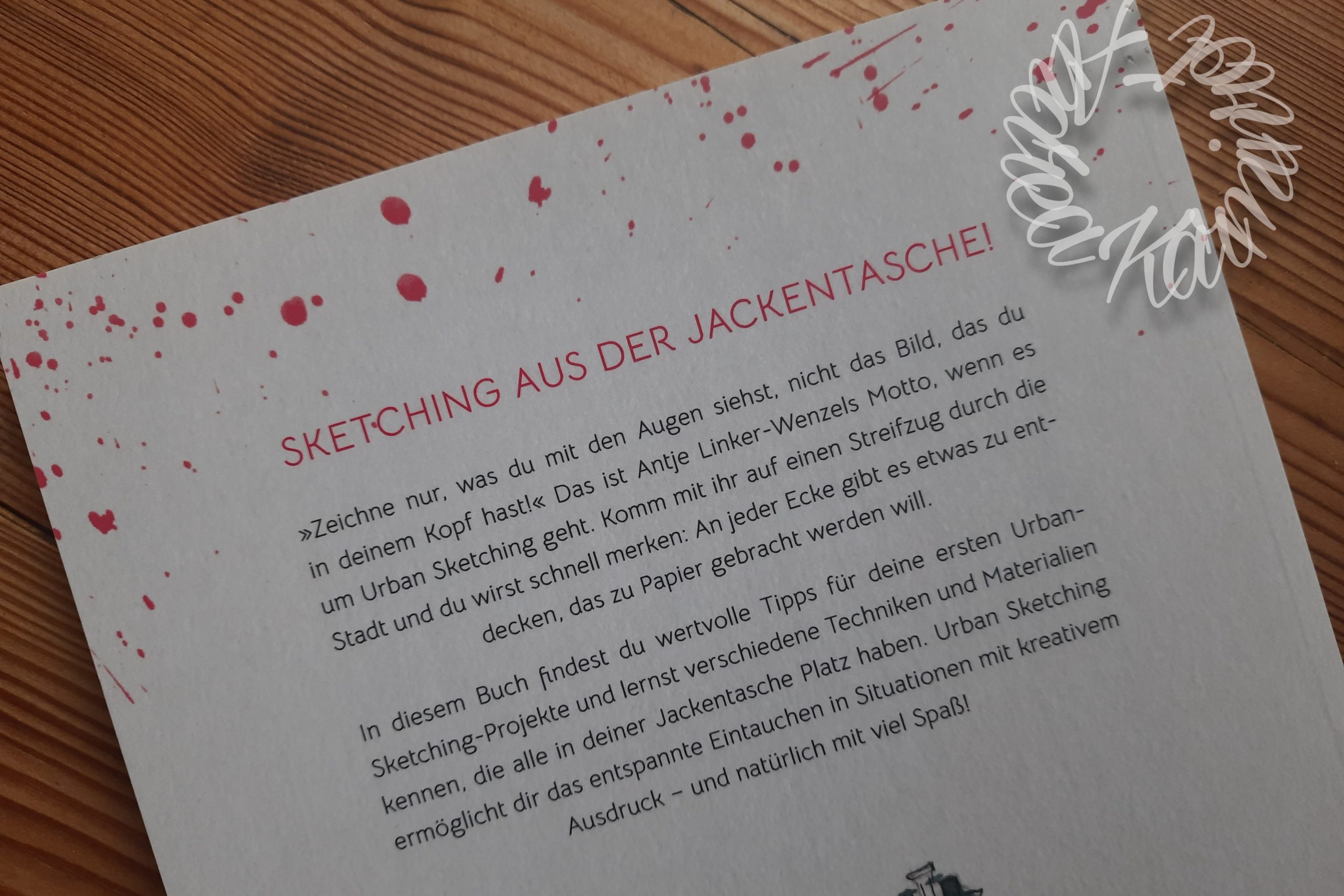 Immer wieder nehme ich mir dieses Buch vor die Nase und hole mir die Tipps, die die Autorin Antje Linker-Wenzel gegeben hat. Ich freue mich auch schon auf die Draußenzeit. Dann werde ich es auch ausprobieren, mich mit meinem Skizzenbuch auf einen Platz zu setzen und zu skizzieren. Dieses Buch ist eine klare Empfehlung von mir. Vielleicht brauchst du ja noch ein Weihnachtsgeschenk, dann ist dieses Buch mein Tipp! Vielleicht noch ein bis drei passende Fineliner oder einen Aquarellkasten
