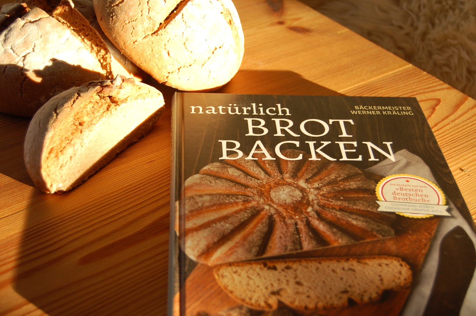 Heute möchte ich euch ein Brotbackbuch vorstellen, dass mich wirklich von den Socken gerissen hat. Der Bäckermeister Werner Kräling erzählt auf 103 Seiten (von 239), was ein gutes Brot ausmacht. Angefangen von den Mehlen, über den selbstgezogenen Sauerteig, bis hin zum richtigen Kneten und Backen. Die Erklärungen rund um die Zutaten sind sehr interessant und verständlich. Man findet Praxistipps und Bilder, die alles deutlich machen. Die Brotrezepte selber sind einfach erklärt. Und wenn man sich auch nur ein wenig auf den informativen Seiten eingelesen hat, versteht man was der Bäckermeister von einem will. Es braucht keine besonderen Materialien, um wirklich köstliche Brote zu backen. Fast alles hat man im eigenen Haushalt. (Vorausgesetzt, man bäckt ab und zu mal) Allein die Knettechnik hat mich fasziniert. Wie lange ein Teig gehen muss und warum, wird plausibel erläutert. Das Rezeptangebot geht vom einfachen Heidebrot, über Toastbrot, zu herzhaftem Mediterranen, hin zu süßen Broten, die allesamt mit schönen Fotos bebildert sind. Auf den letzten Seiten, findet man auch noch einmal eine Zusammenfassung der Grundbegriffe mit einer Kurzerklärung. Gut, dass es in meinem Haushalt einen gut gefütterten Sauerteig gibt, der kurzerhand mit den richtigen Mehlen zum Einsatz kam. Da ich keine Küchenmaschine besitze und ich den Teig ohnehin gerne knete (da kann man seine ganze aufgestaute Wut hineinkneten!), wurden die Zutaten auf die Küchenplatte gestreut und zu einem Hefeteig verknetet. Der Bäckermeister erklärt im Anfangsteil des Buches, wie wichtig das ausdauernde Kneten ist. So quälte* ich den Teig etwa 25 Minuten. (*Übrigens ein Ausdruck, den der Autor selber verwendete). Und es hat sich wirklich gelohnt.