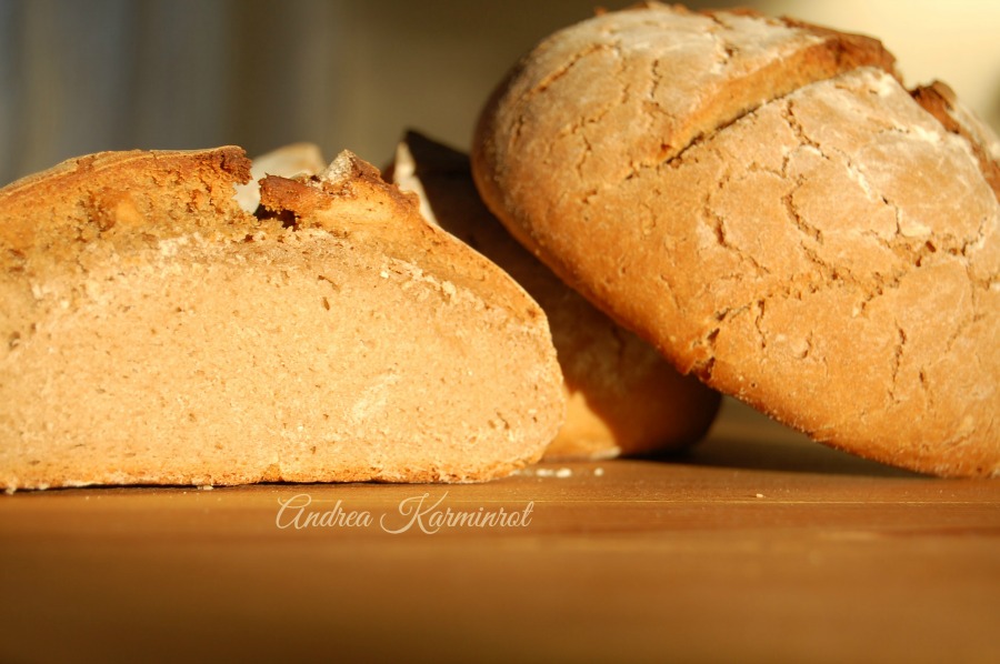 Heute möchte ich euch ein Brotbackbuch vorstellen, dass mich wirklich von den Socken gerissen hat. Der Bäckermeister Werner Kräling erzählt auf 103 Seiten (von 239), was ein gutes Brot ausmacht. Angefangen von den Mehlen, über den selbstgezogenen Sauerteig, bis hin zum richtigen Kneten und Backen. Die Erklärungen rund um die Zutaten sind sehr interessant und verständlich. Man findet Praxistipps und Bilder, die alles deutlich machen. Die Brotrezepte selber sind einfach erklärt. Und wenn man sich auch nur ein wenig auf den informativen Seiten eingelesen hat, versteht man was der Bäckermeister von einem will. Es braucht keine besonderen Materialien, um wirklich köstliche Brote zu backen. Fast alles hat man im eigenen Haushalt. (Vorausgesetzt, man bäckt ab und zu mal) Allein die Knettechnik hat mich fasziniert. Wie lange ein Teig gehen muss und warum, wird plausibel erläutert. Das Rezeptangebot geht vom einfachen Heidebrot, über Toastbrot, zu herzhaftem Mediterranen, hin zu süßen Broten, die allesamt mit schönen Fotos bebildert sind. Auf den letzten Seiten, findet man auch noch einmal eine Zusammenfassung der Grundbegriffe mit einer Kurzerklärung. Gut, dass es in meinem Haushalt einen gut gefütterten Sauerteig gibt, der kurzerhand mit den richtigen Mehlen zum Einsatz kam. Da ich keine Küchenmaschine besitze und ich den Teig ohnehin gerne knete (da kann man seine ganze aufgestaute Wut hineinkneten!), wurden die Zutaten auf die Küchenplatte gestreut und zu einem Hefeteig verknetet. Der Bäckermeister erklärt im Anfangsteil des Buches, wie wichtig das ausdauernde Kneten ist. So quälte* ich den Teig etwa 25 Minuten. (*Übrigens ein Ausdruck, den der Autor selber verwendete). Und es hat sich wirklich gelohnt.